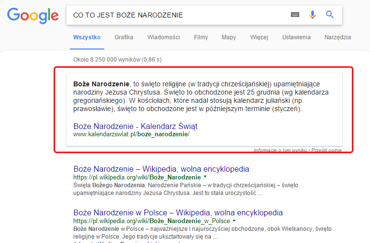 Od niedawna Google postanowiło wyświetlać odpowiedzi na najpopularniejsze pytania bezpośrednio w wynikach wyszukiwania.