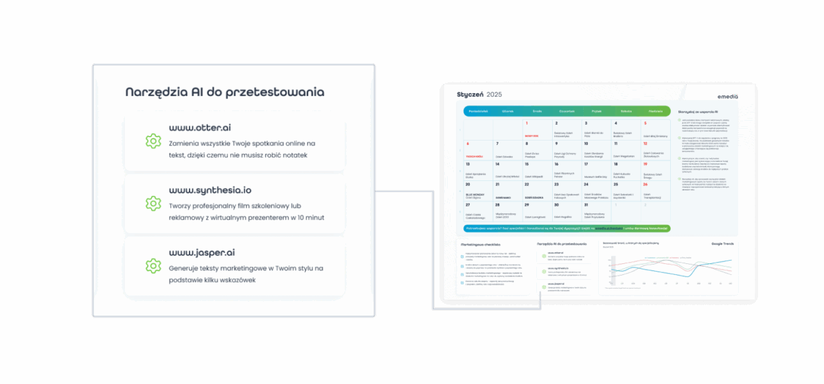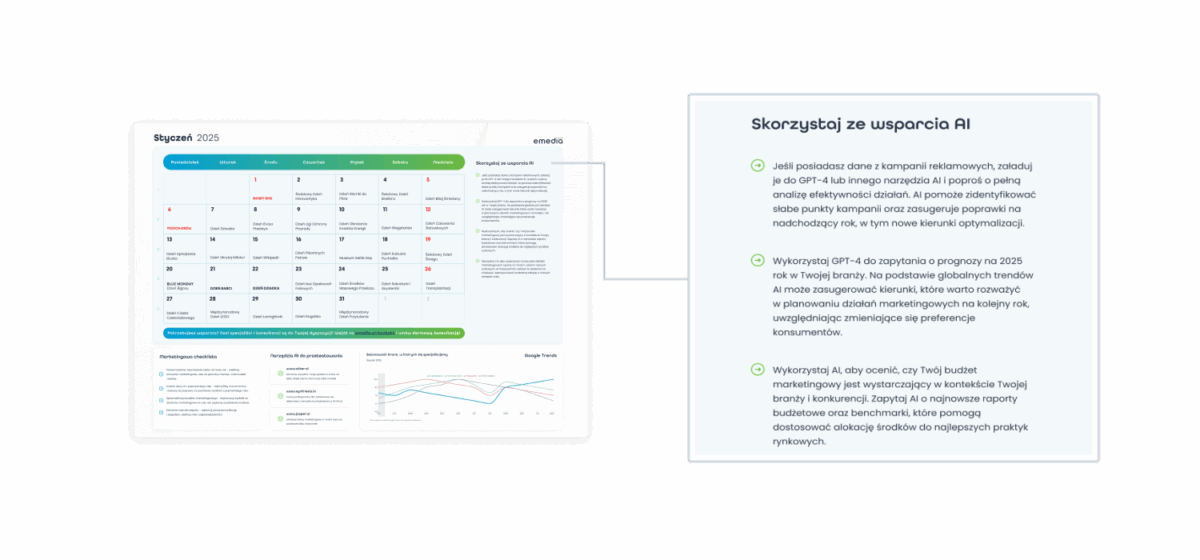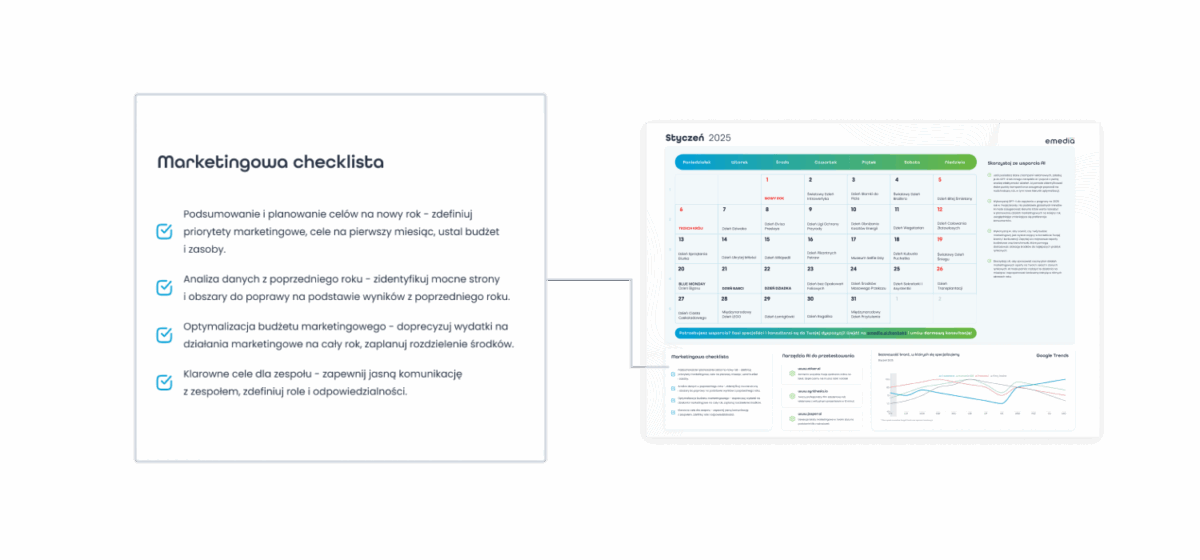Planujesz skuteczne kampanie marketingowe na 2025 rok? Nasz Kalendarz Marketingowy 2025 to idealne narzędzie dla każdego, kto chce zoptymalizować działania marketingowe, zwiększyć rozpoznawalność marki i efektywnie zarządzać czasem.